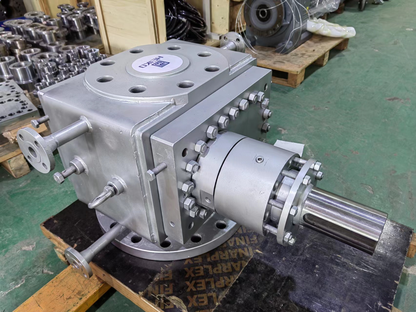 排出過程:當(dāng)齒輪旋轉(zhuǎn)到另一位置時(shí),齒輪間的容積減小,熔體被擠出泵腔,并通過出口管道輸送到下游工藝或系統(tǒng)。
